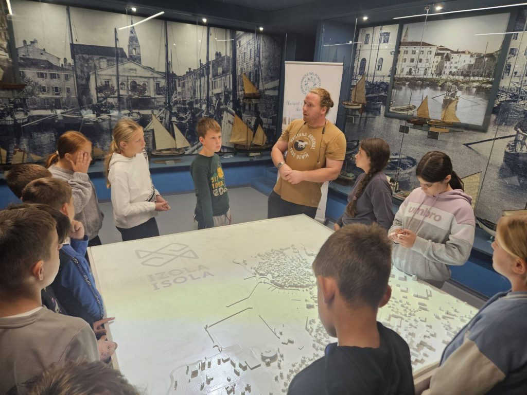 V Muzeju Izolana in na sprehodu po izolskih ulicah so učenci spoznavali življenje ob morju, ribiško tradicijo ter vlogo žensk v tovarnah Delamaris in Droga.